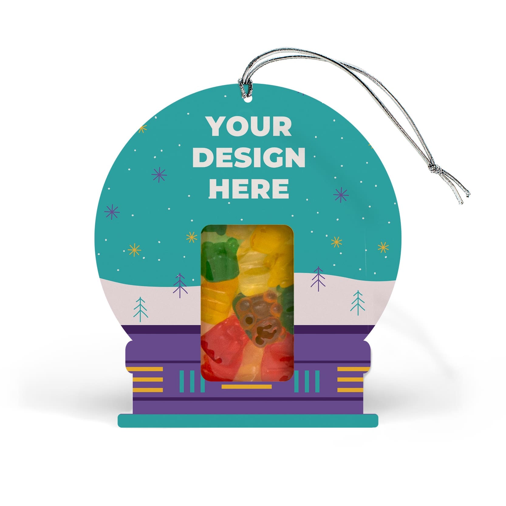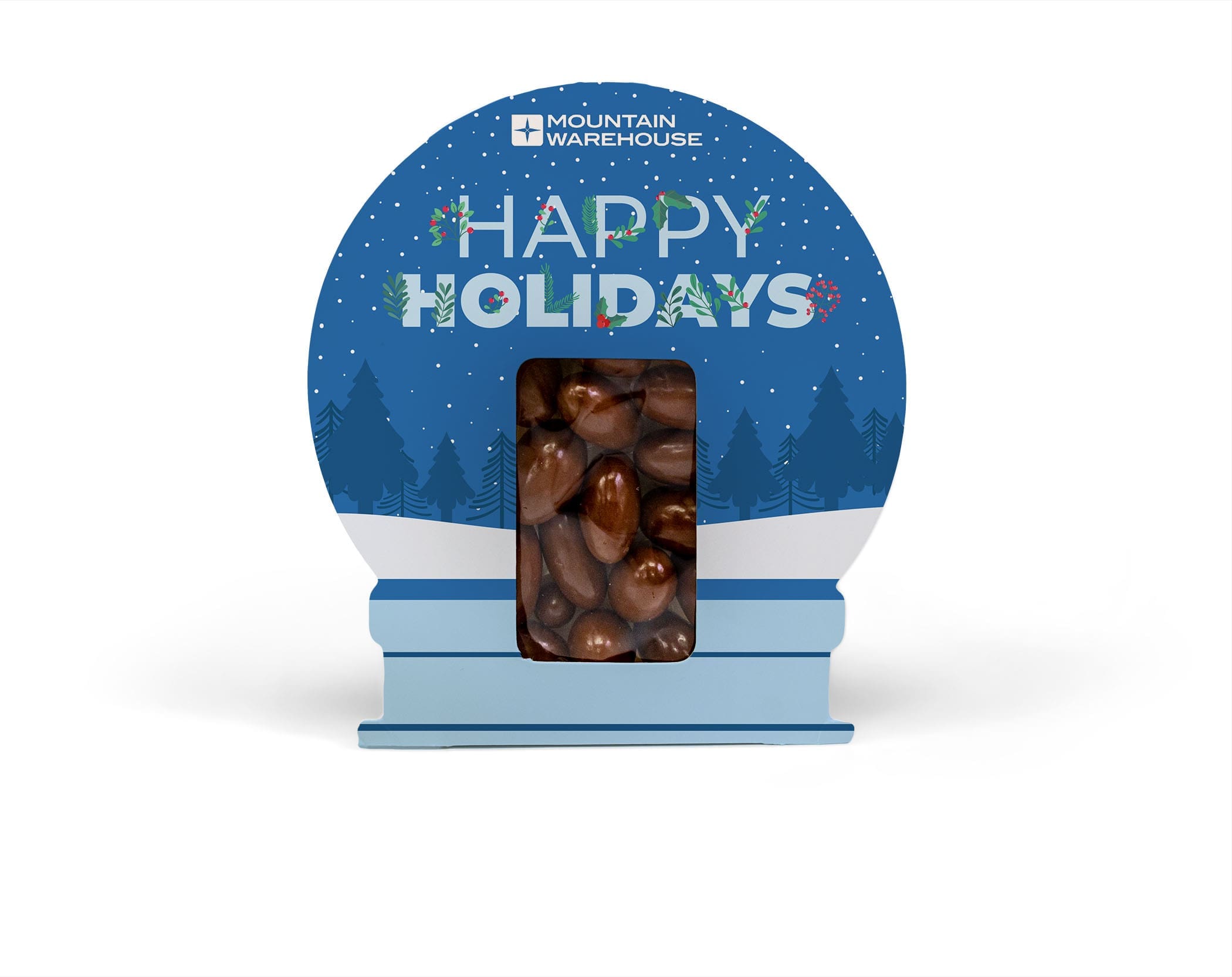 A winter wonderland, packed with sweetness. Shaped like a classic snow globe, this charming treat box captures the spirit of the season. Pick one of four delicious treat varieties and customize the box with your own artwork, logo, or message for a gift that delights inside and out. Add an optional stretch loop to turn it into a keepsake ornament!
