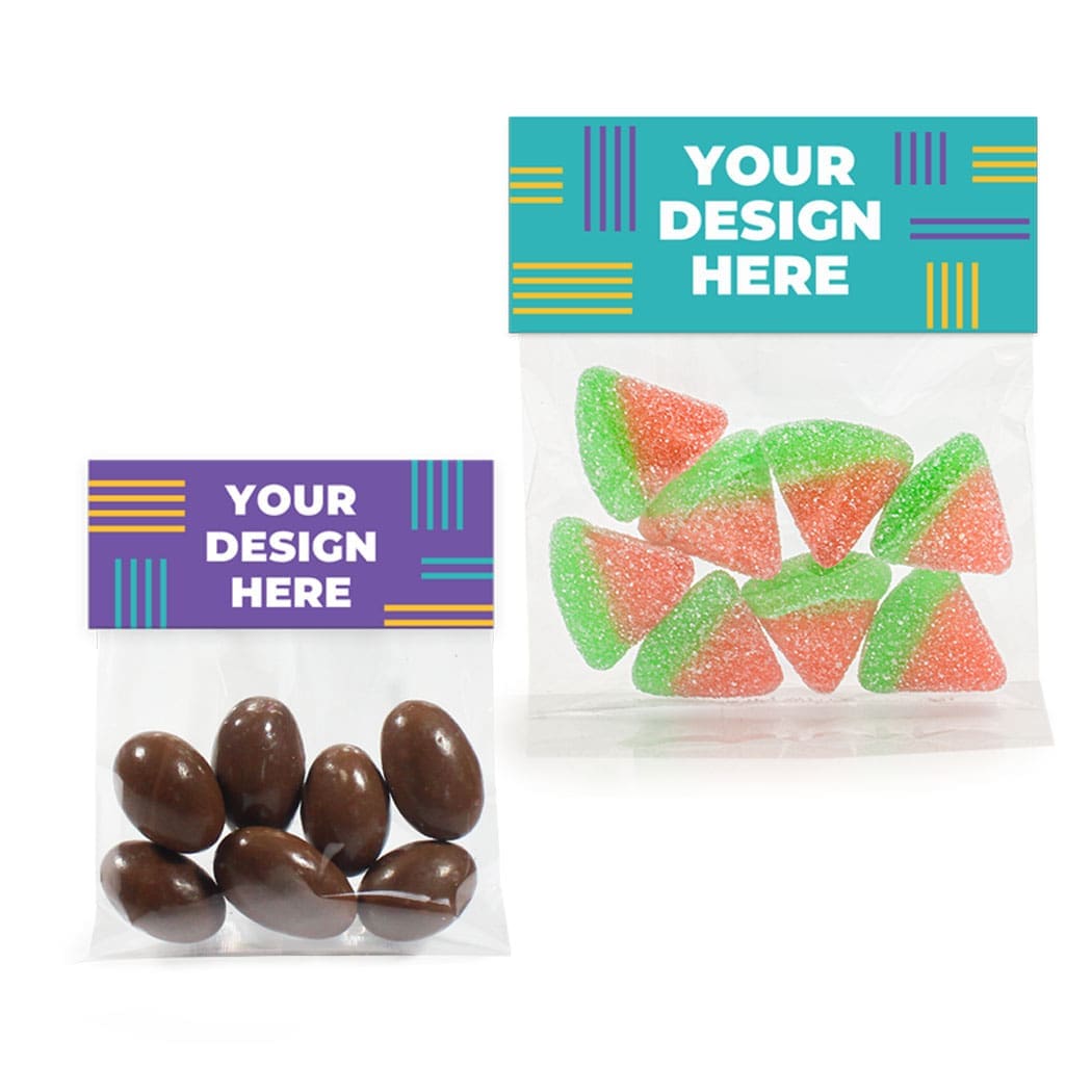 Sweet, simple, and totally customizable. These header bags come filled with your choice of treats and topped with your own design or message—ideal for celebrations, giveaways, party favours, community events, and everyday appreciation.