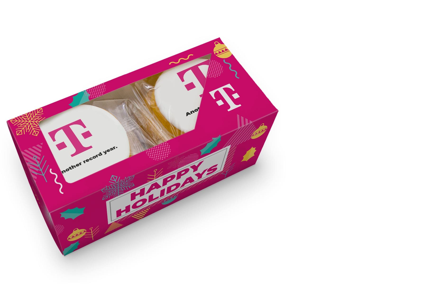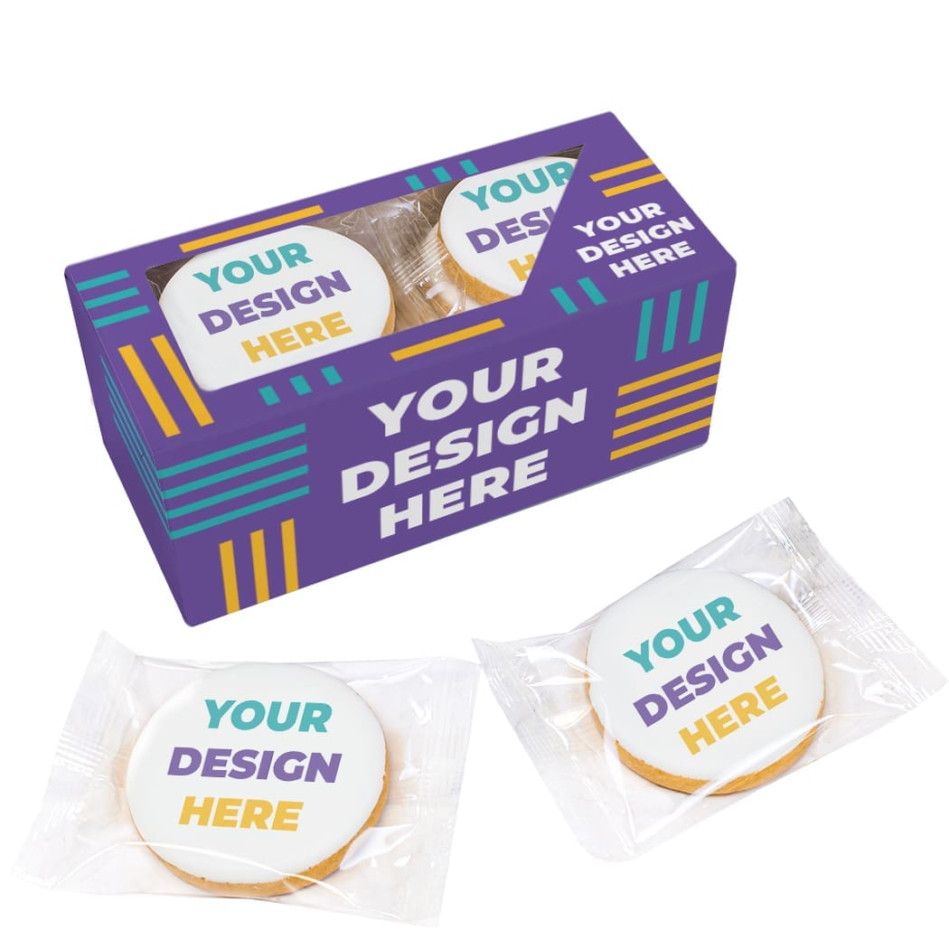 A dozen fresh shortbread cookies, each featuring your full-colour design on royal icing, packed inside a fully customizable box to match. A thoughtful (and delicious!) way to share a thank-you, a warm greeting, or a celebratory message.