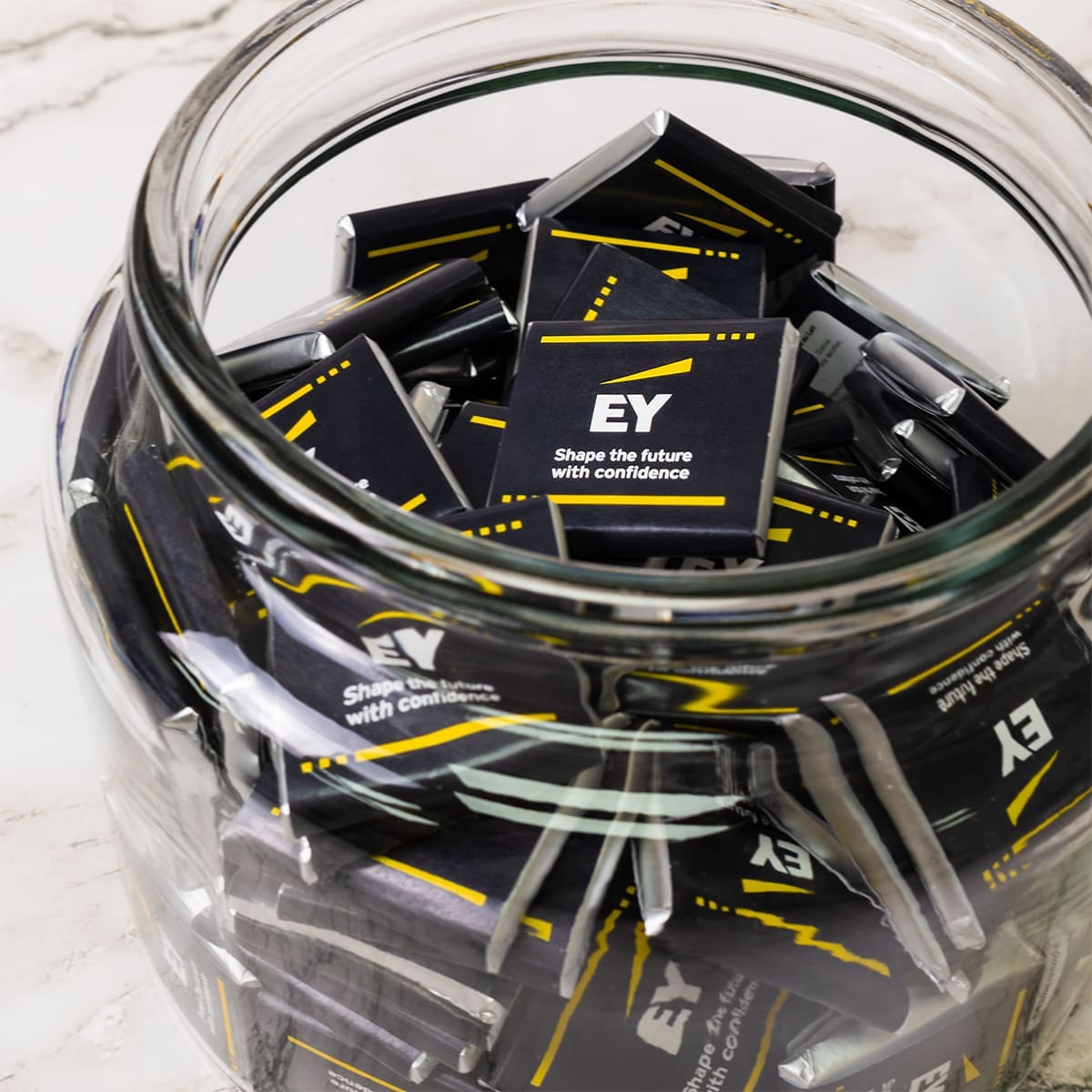 A Classic – from reception desks to hotel pillows this little chocolate square shows up everywhere. Created for every day handouts to keep your brand top of mind with a sweet treat.